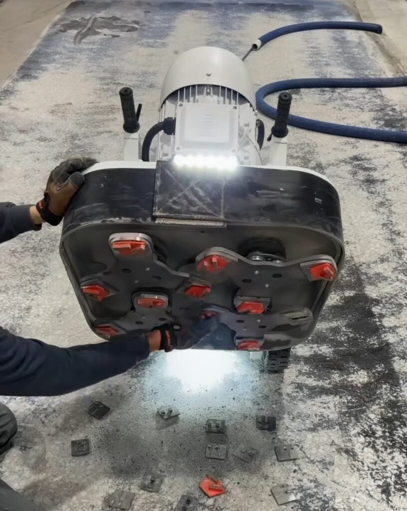 Its 20HP motor has strong torque and its variable speed drive easily adjusts to different grinding or polishing conditions for concrete, terrazzo, marble, and stone applications.